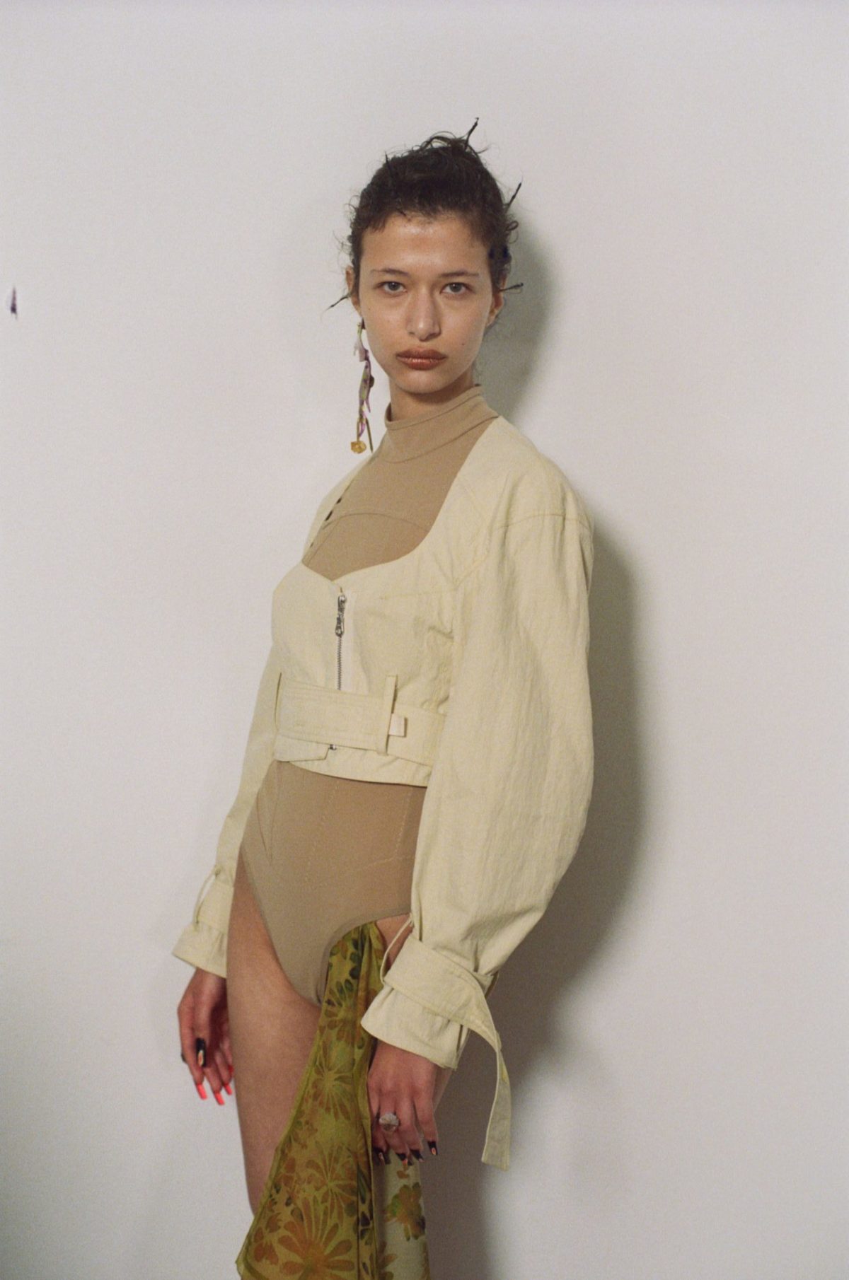 Charlotte Knowles and her creative partner Alexandre Arsenault had their heads firmly set on burgeoning an enticing range of pioneering ideas through their newly cogitated label. Yet, the duo has created an eclectic variety of lingerie that owns a very sporty edge. So think simple, not weary; these propositions may result in winning your roughest midseason weather switches, utilising a subtle plethora of breezy cuts and gentle clothing. Sporty? Surely, it’s ahead of us. As opening looks bounded with cycling shorts and strapless busters, tailoring was made ever so fuss-free, asserting a grand state of summery choices.